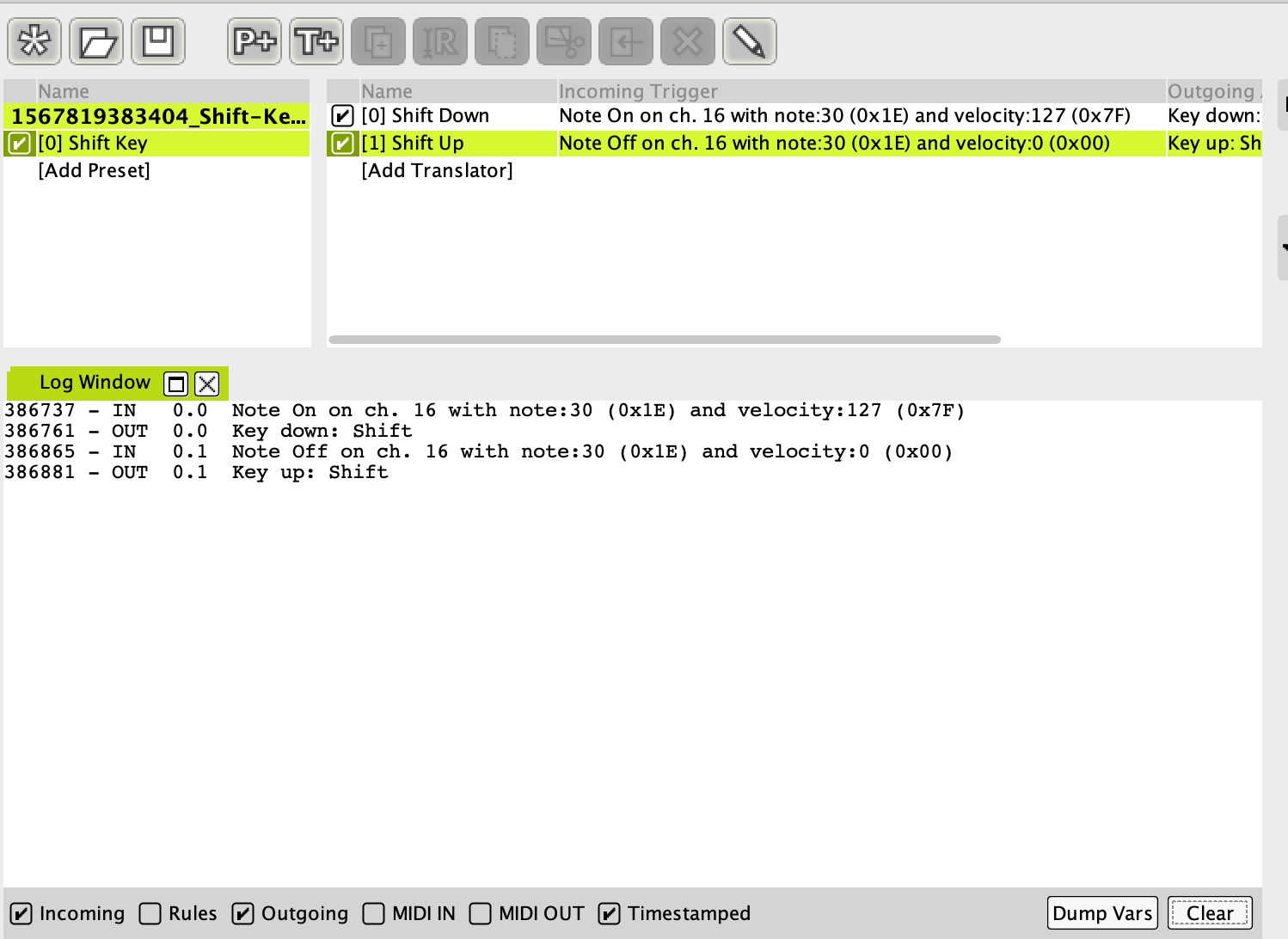 I’m running it in macOS, I want to use it in ableton, but I’ve tried it in the Finder to select several files, but it doesn’t work. The capture you show is not the same as what Bome notifies me. I enclose a sample of what happens in my macbook. As you can see it does not recognize that I am sending the Key Down and KeY Up function, only “Shift” is output.
