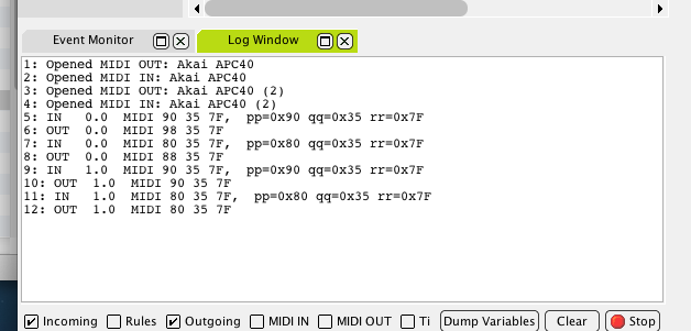 This is a task for Global Variables.Once we can figure out this issue, I want to set them with an on/off switch. EXPALNATION: I have a new Python Script File coming to me. The File is based on the APC20 Script with a few buttons rearranged to be used on the APC40. The Track Selection buttons in the Script have been setup up so that when I hold the Shift button down, the Track Select Buttons turn off (NO Signal in or out when the buttons are pushed). Now in Bome, I want to setup the same buttons, but having them OFF and when I push the Shift Button they turn on.